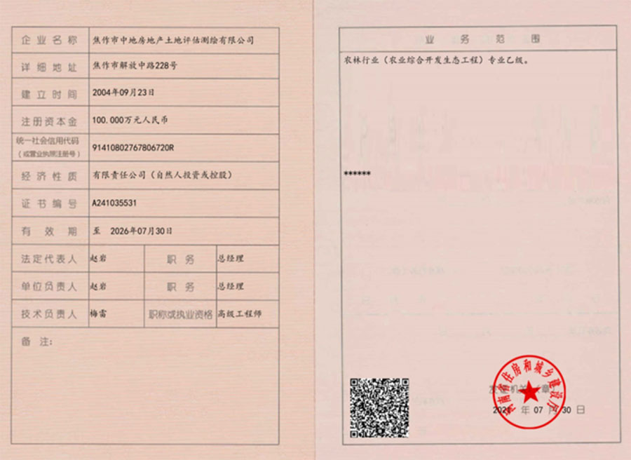 土地评估、房地产评估、土地登记代理服务、土地房地产政策咨询、测绘服务、土地规划服务、农业综合开发设计服务、软件开发等